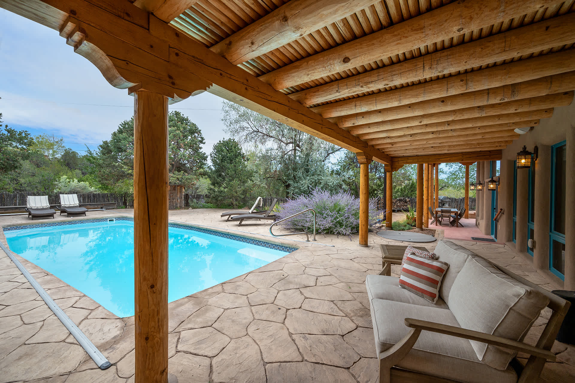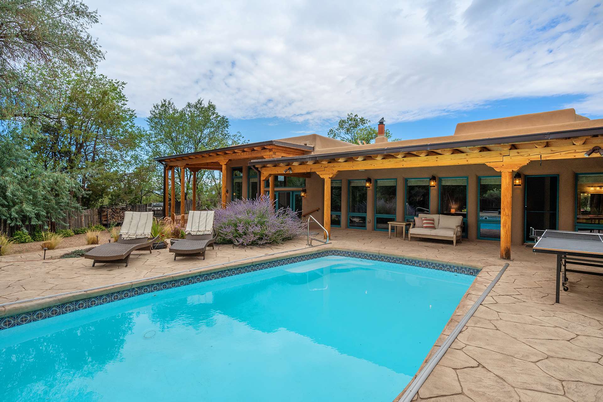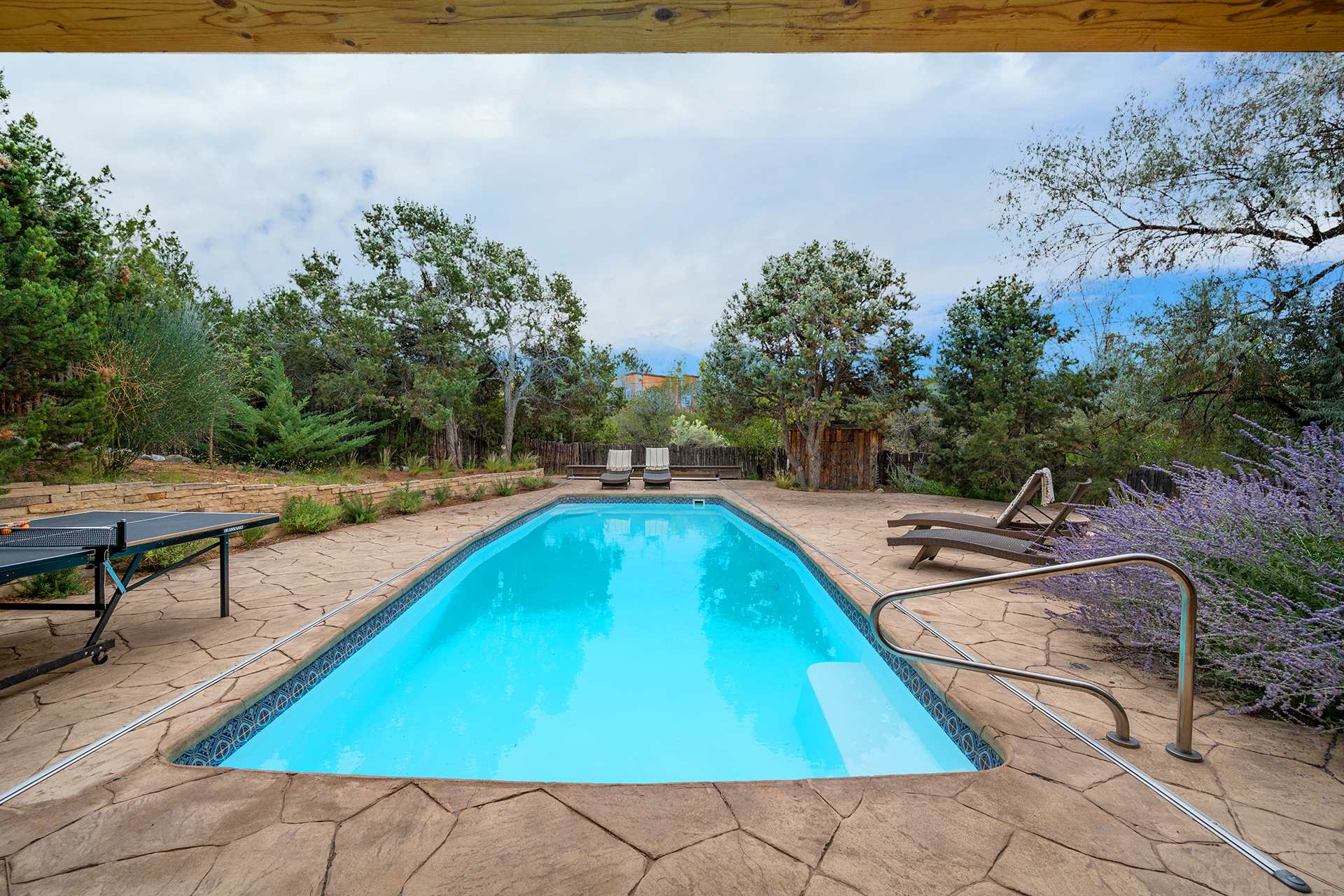 Luxury Retreat! Enjoy this resort-style 3-bedroom home with a pool, hot tub, and modern amenities. Just a short drive from Santa Fe’s top attractions. Book now!