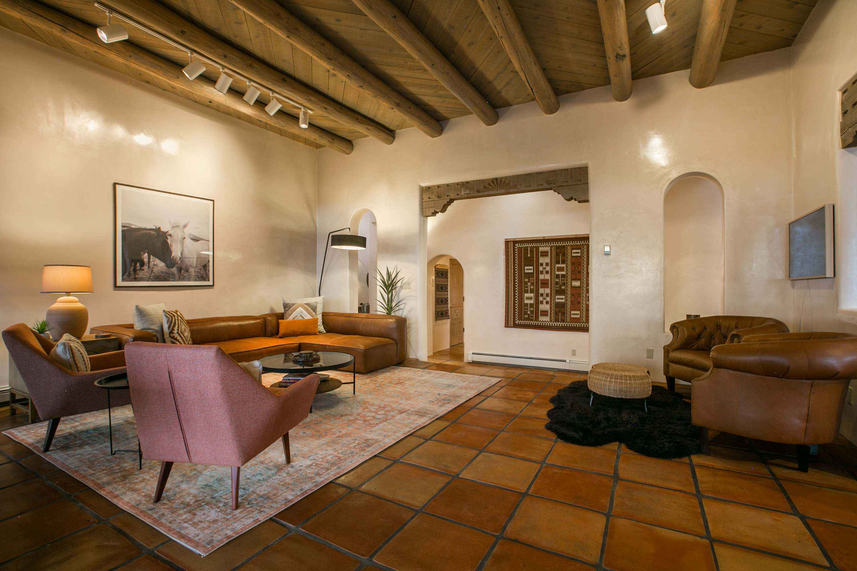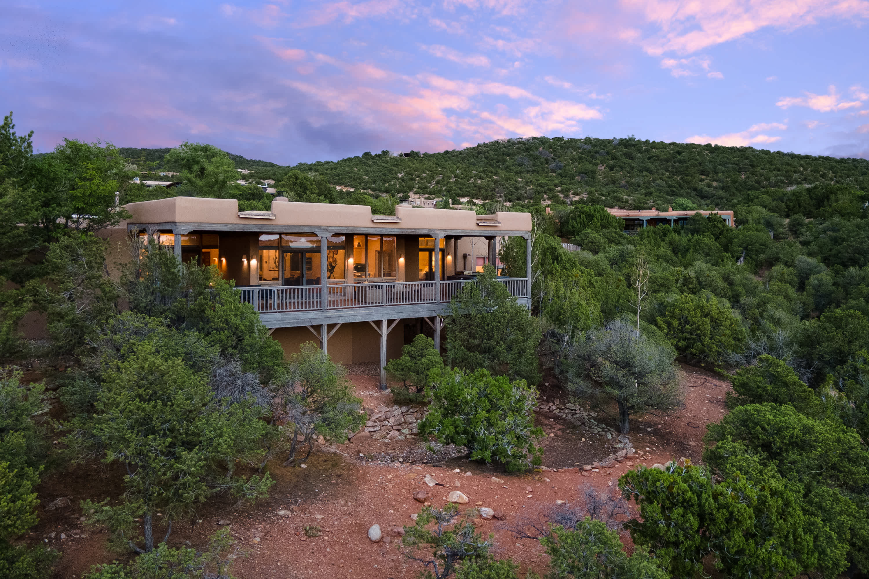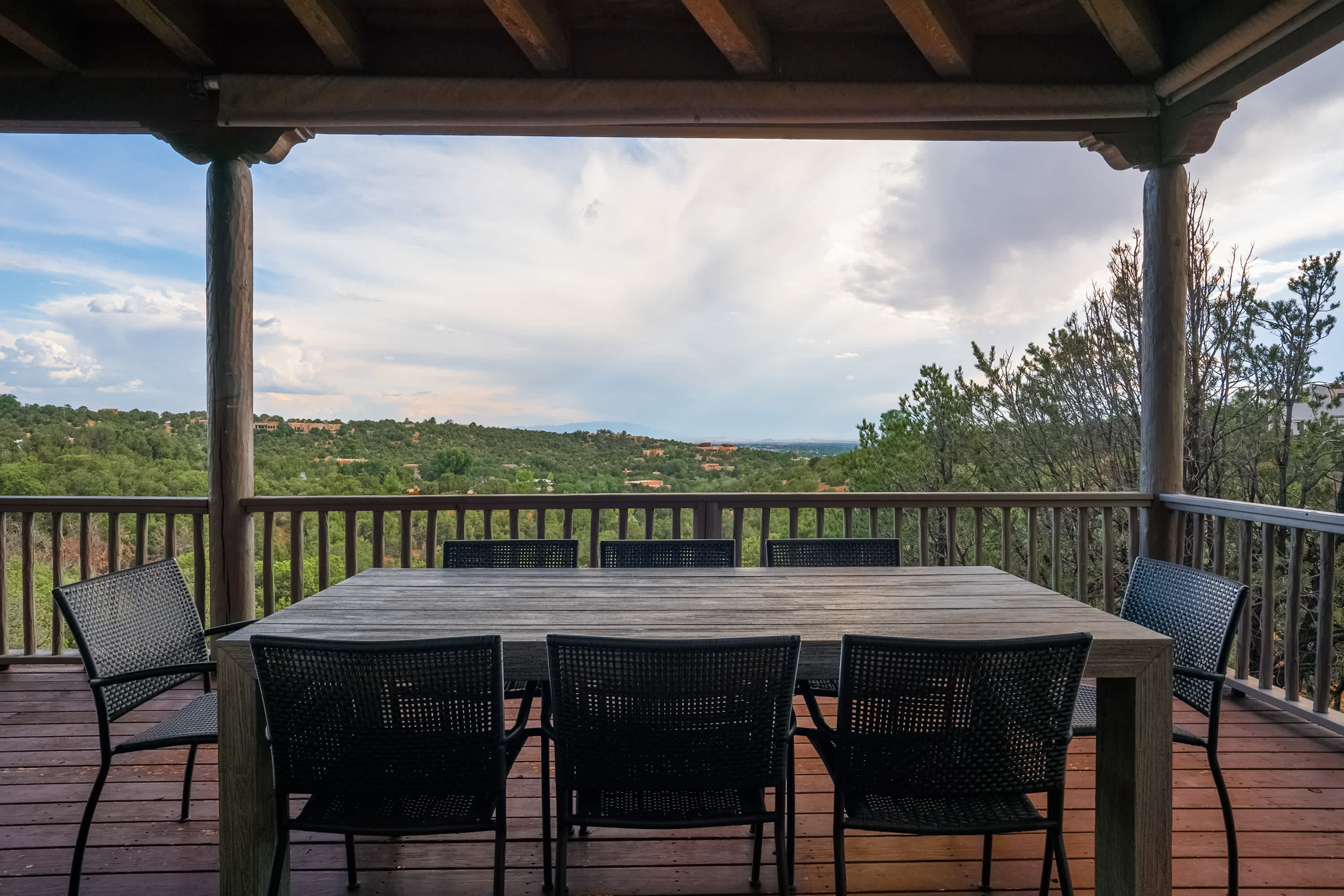Vista Grande is a superb four-bedroom, four bath home on an exclusive 1.4 acre lot complete with stunning mountain views yet 2 miles to Canyon Rd. and the Plaza. Access to Ten Thousand Waves and The Ski basin are unparalleled from this scenic Indian Ridge community.