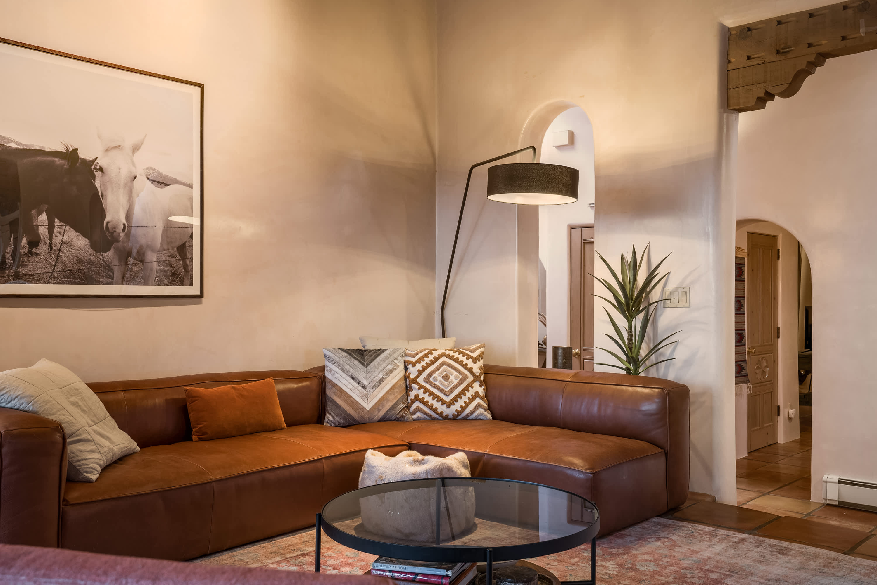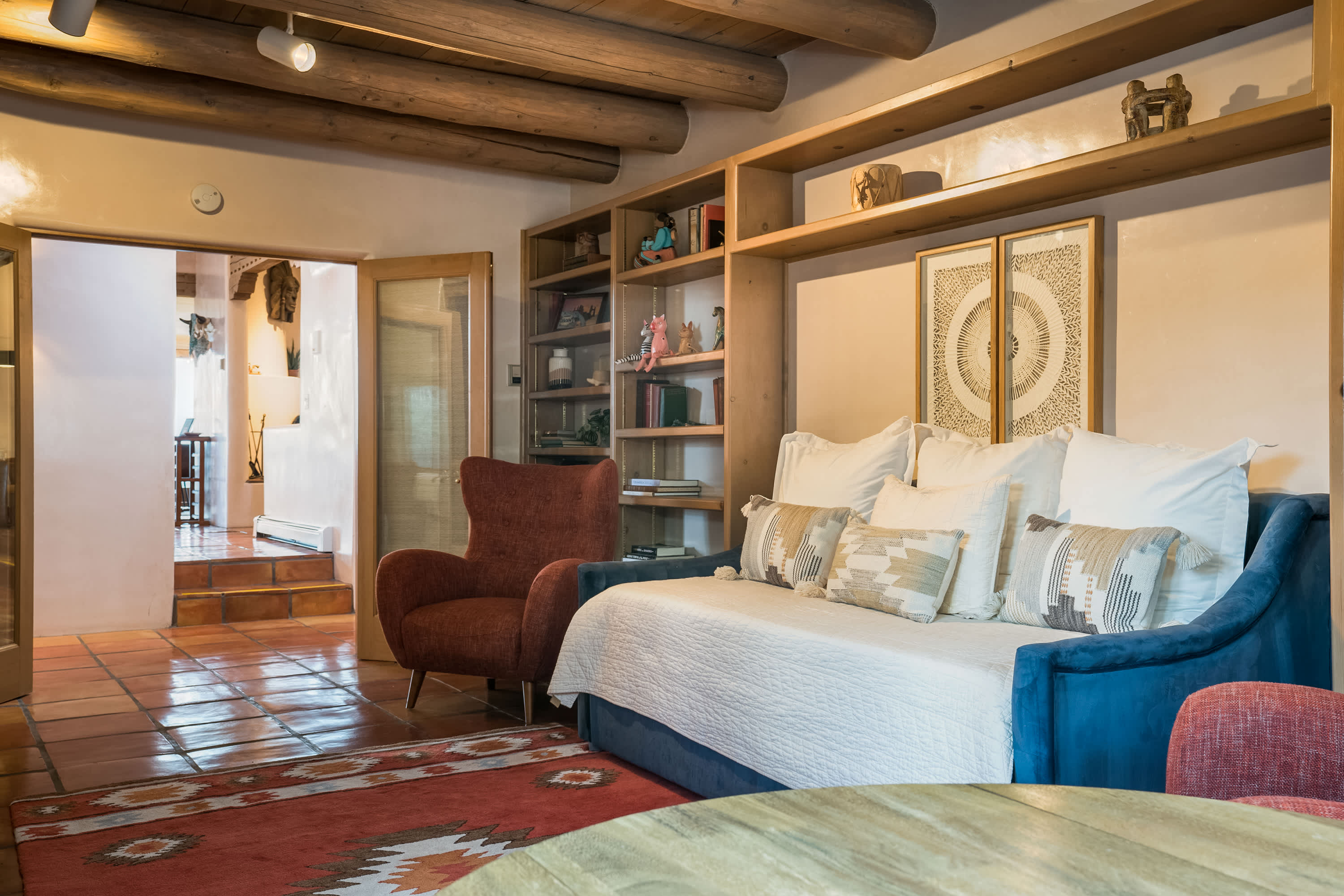 From the moment we drove along the quiet, rolling roads of the neighborhood to the second we stepped into this spacious, art- and light-filled home, we felt an immediate sense of peace and relaxation. The home is just a short drive from Santa Fe’s m…
