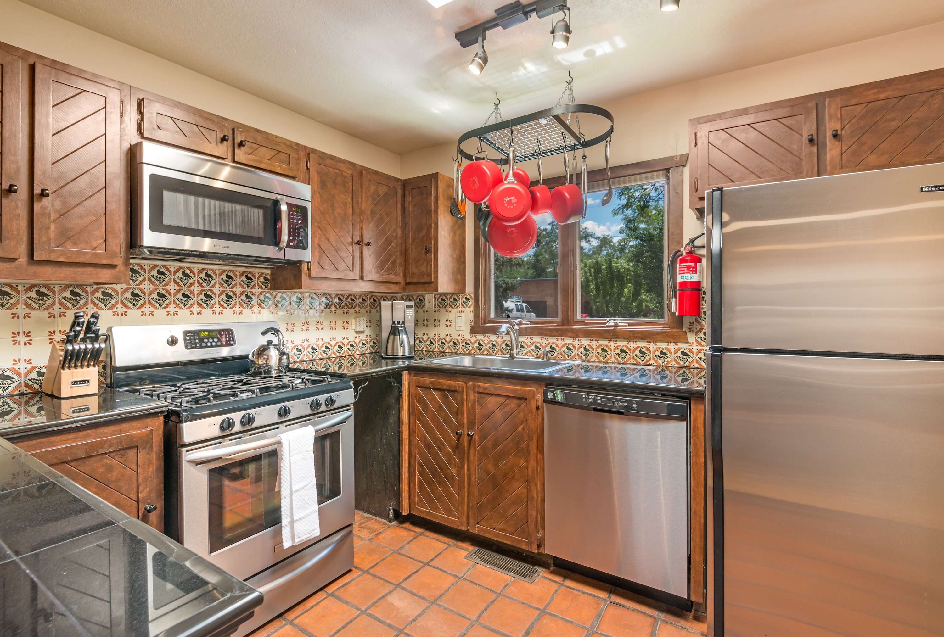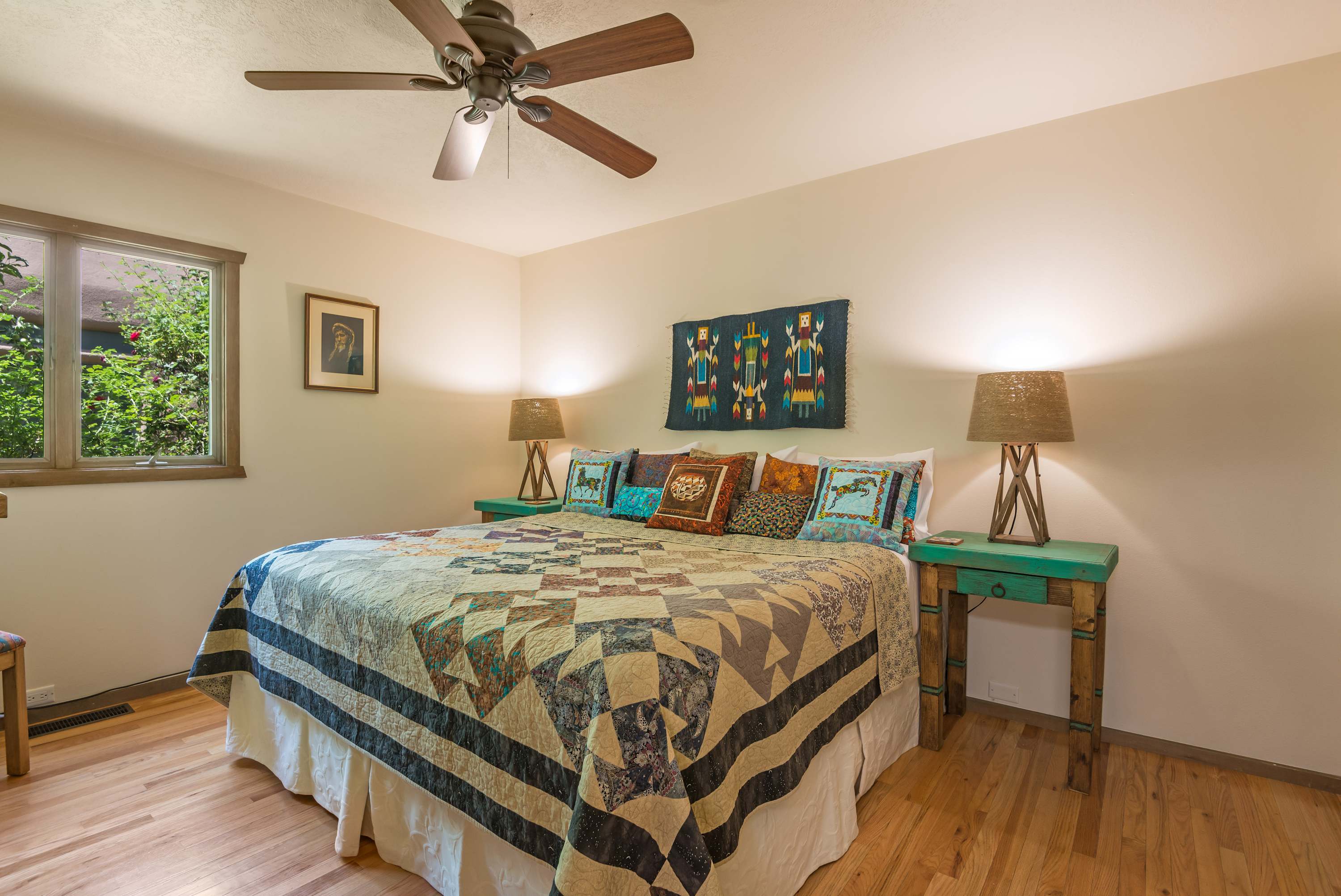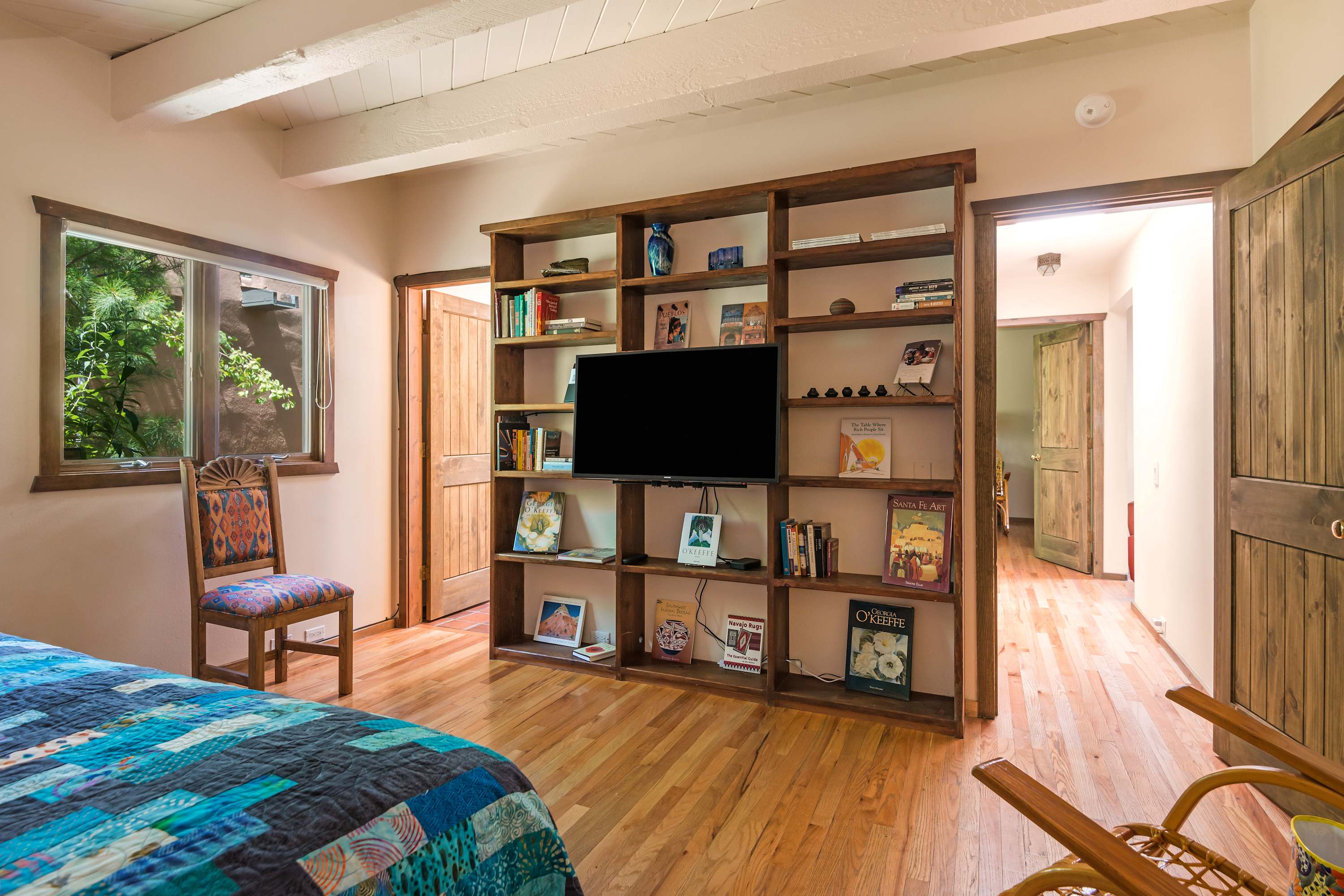 Alegre is a classic northside Santa Fe Style condo in one of Santa Fe’s most beloved districts, just a ten minute walk to the Plaza. This home has the perfect layout for two couples. With viga ceilings, hardwood floors, and Southwestern art throughout, Alegre is warm, inviting, and conveys a traditional atmosphere.